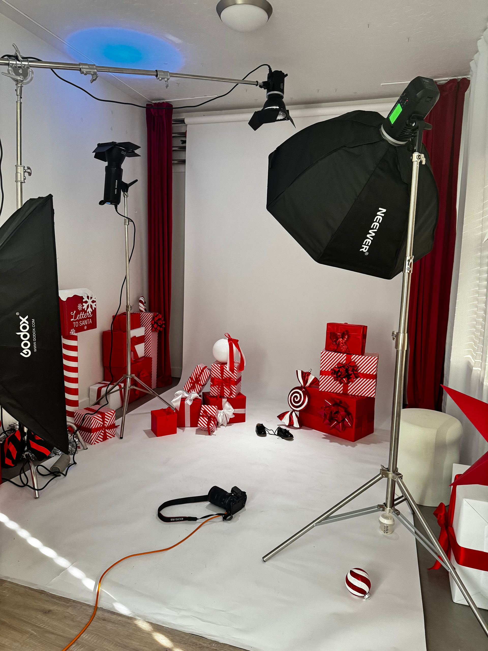 I shoot in my private studio, fully equipped with seamless backdrops, styled elements, and professional lighting designed to produce consistent, high-quality results.